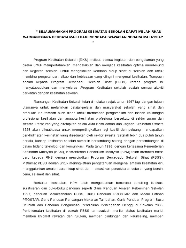 Kertas Kerja Program Kesihatan Sekolah Rendah Pdf